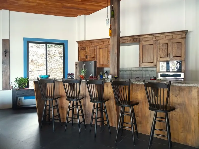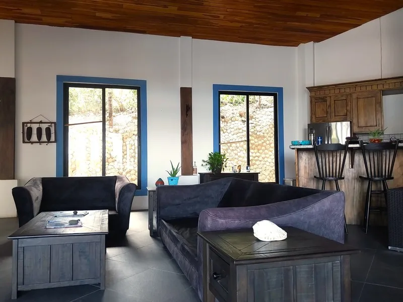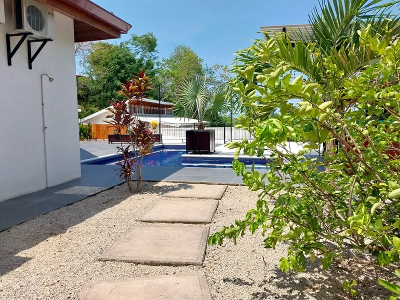 The home is designed to make the most of the view of Playa Samara and is perfectly built for hosting family and friends. The large kitchen and living area, with beautiful high ceilings, opens to a huge patio, pool, and covered bar area.