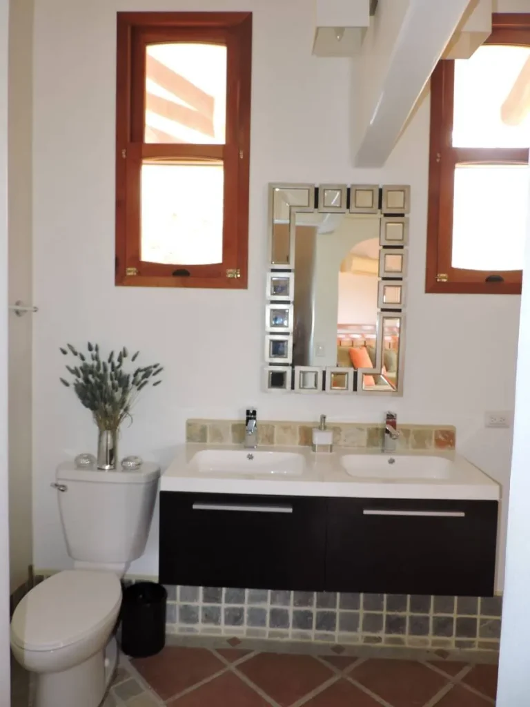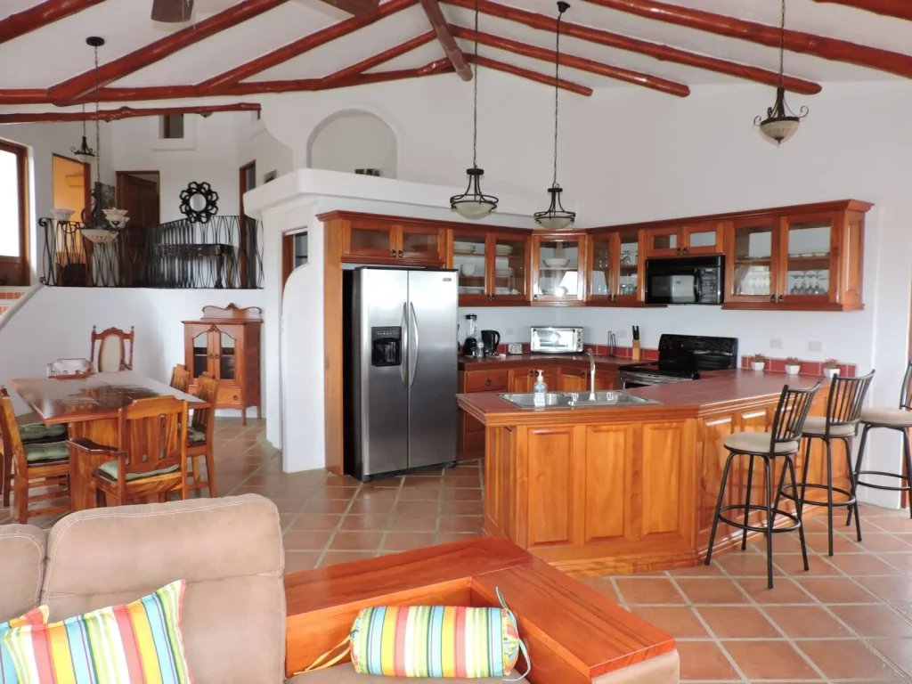 Just a 7 minute drive away is Playa Carrillo and a 10-minute drive west is Playa Samara, a paradisiacal destination with small waves perfect for family enjoyment, with restaurants along the beach, surf schools and other services of tourist interest. This distinctive house of Spanish type architecture, is divided into 4 bedrooms, 4 bathrooms, living room and kitchen, with a large social space and a good size kitchen fully designed in the Spanish style with views of the ocean and the mountains that surround it.