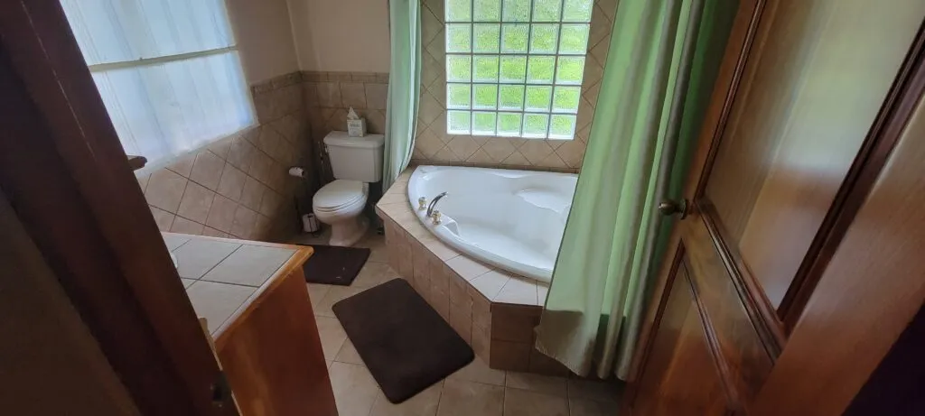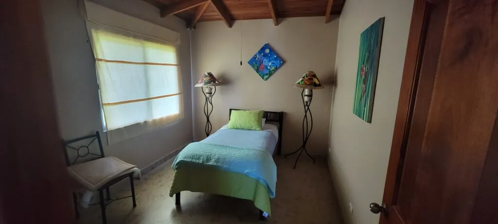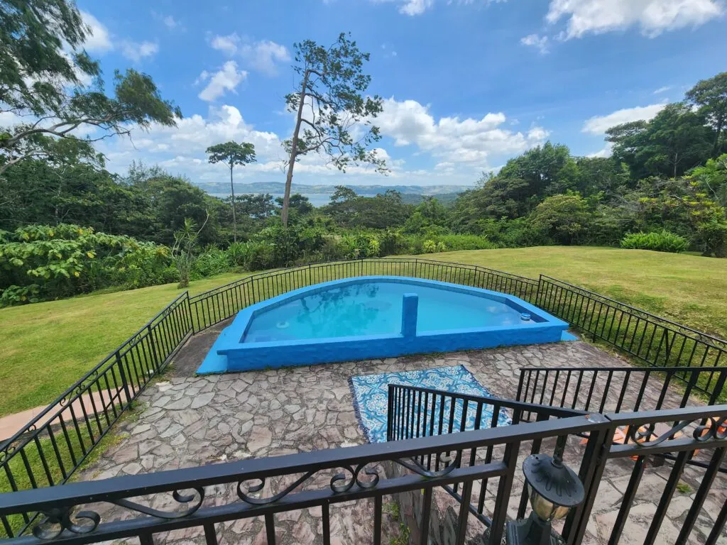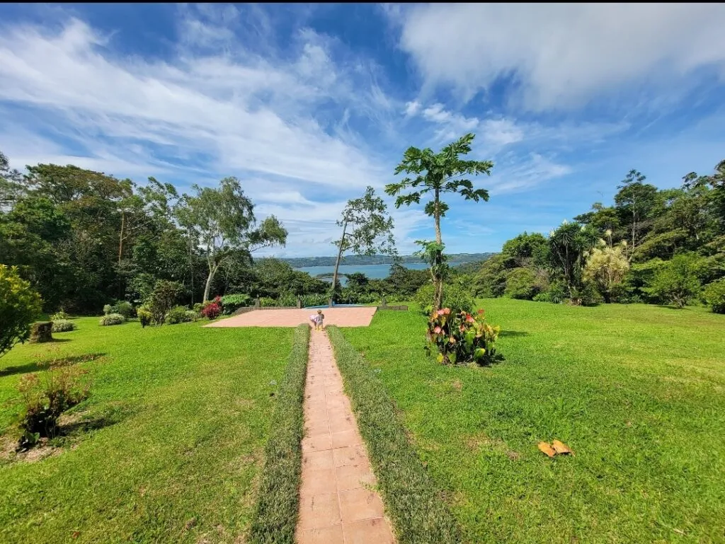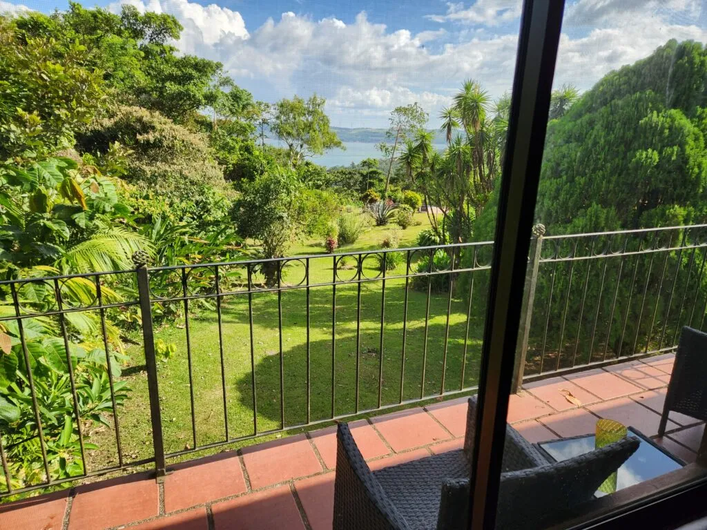 This very lovely modern home is in a natural setting surrounded by trees with an expansive view in front of Lake Arenal and the rolling Continental Divide mountains. It is true “Pura Vida” tranquility. If you want a colonial modern style house with 3 bedroom, 2 bath home to live in comfort and also have a rental apartment/guest house everything surrounding by an amazing humid premontane rainforest this is the property for you. The property is set on over 8 acres of greenery and landscaped gardens. You will hear the monkeys howling and see may beautiful colorful birds in this tropical setting. There is a pool for a relaxing swim down in front of the house which adds to the appeal of sitting on the front porch.